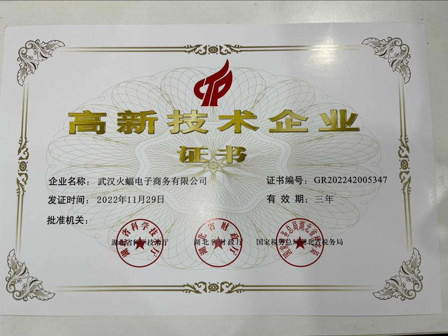 火蝠電商頻傳捷報(bào),兩度斬獲湖北省高新技術(shù)企業(yè)認(rèn)證