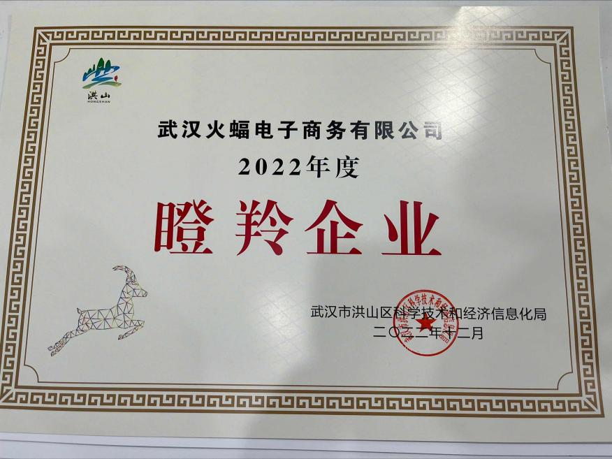▲火蝠電商「瞪羚企業(yè)」認(rèn)證證書