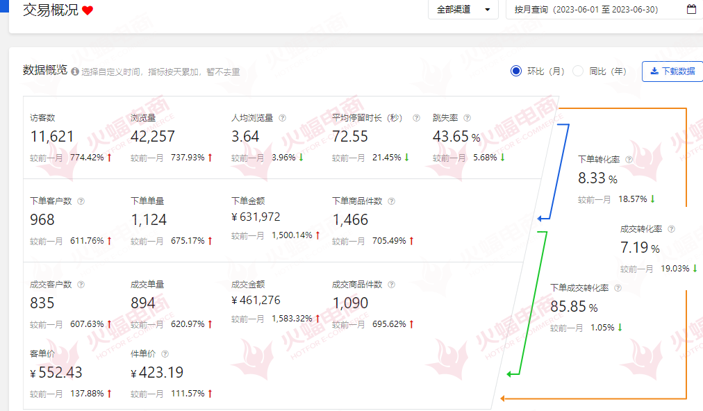 借勢618大促,成功“找對人,說對話”,整個項目從策劃到落地,短短一個月,團隊就高效完成了店鋪上線、頁面裝修、產品上架、推廣引流等相關工作,幫助品牌方京東店鋪銷量爆發。數據顯示,新開奶粉店鋪僅上線一個月,銷量突破46萬,訪客增長155.95%,整店數據取得持續增長。本次呈現的京東店鋪奶粉類目案例,不僅獲得了品牌主秦浩(化名)的高度贊許,也再次強有力地證明了火蝠電商在多電商平臺運營和數字化營銷等方面的綜合實力。