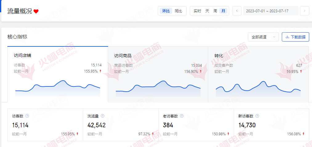 ▲店鋪7月流量數據。圖火蝠電商。