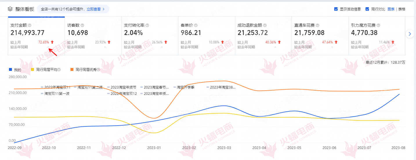 據悉,該服務商與阿里、京東、拼多多等平臺均有合作,長年擁有一線資源,始終堅持以「客戶增長」為導向,用實際運營成績說話。在本次與地磅店鋪商家的合作中,成功幫助品牌主店鋪銷售額30天提升30%,支付金額上升72%,支付新賣家增加62.7%,流量提升17%,在品牌主持續(xù)取得增量的同時,火蝠電商作為服務方,也不斷從過程中汲取經驗,快速反應市場需求及消費趨勢變化,凝練「地磅」小眾品類經營玩法,鞏固競爭優(yōu)勢。